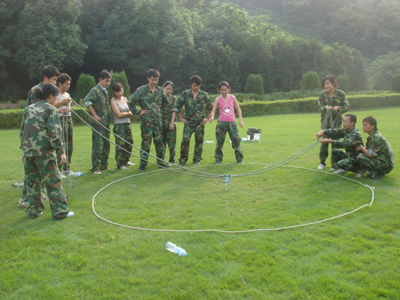大家齊心協力完成拓展項目