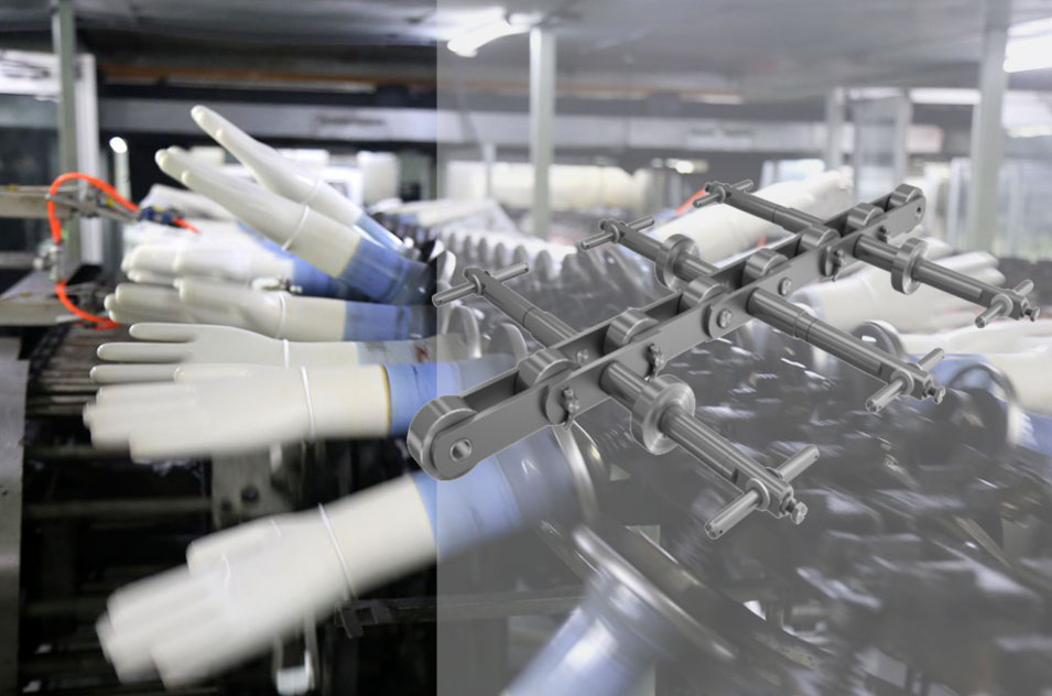 ● 橡膠手套鏈已經(jīng)形成系列化產(chǎn)品,通過特殊設(shè)計,滿足橡膠手套生產(chǎn)線更長、更快、優(yōu)質(zhì)高效的制造需求。