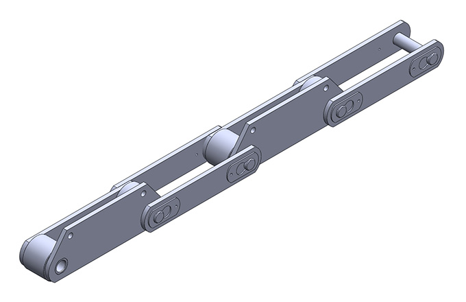 2.外置滾輪式鏈條: 噪音小,兼具大滾子式鏈條的性能優(yōu)點(diǎn)。