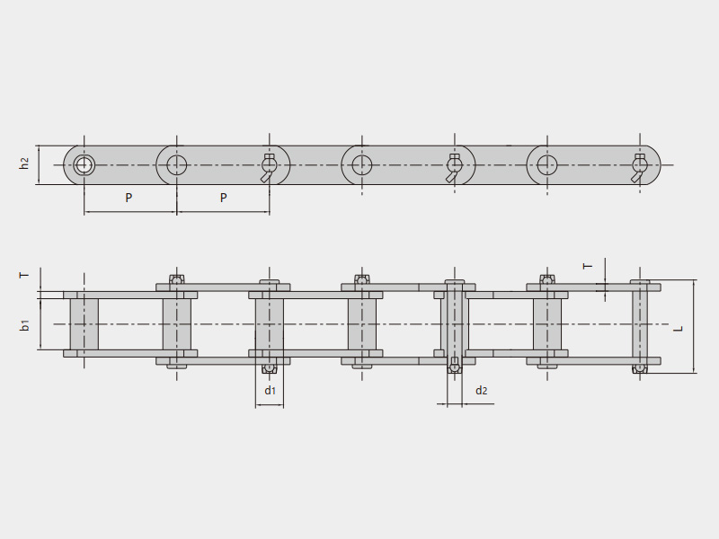 ● 工程用鋼制套筒鏈主要按ASME B29.12M《鋼制套筒(無滾子)鏈、附件和鏈輪齒形》、JB/T 5398《鋼制套筒鏈、附件及鏈輪》、JB/T 3926《垂直斗式提升機》等標準進行設計和制造,也可以按照用戶需求進行定制開發。
